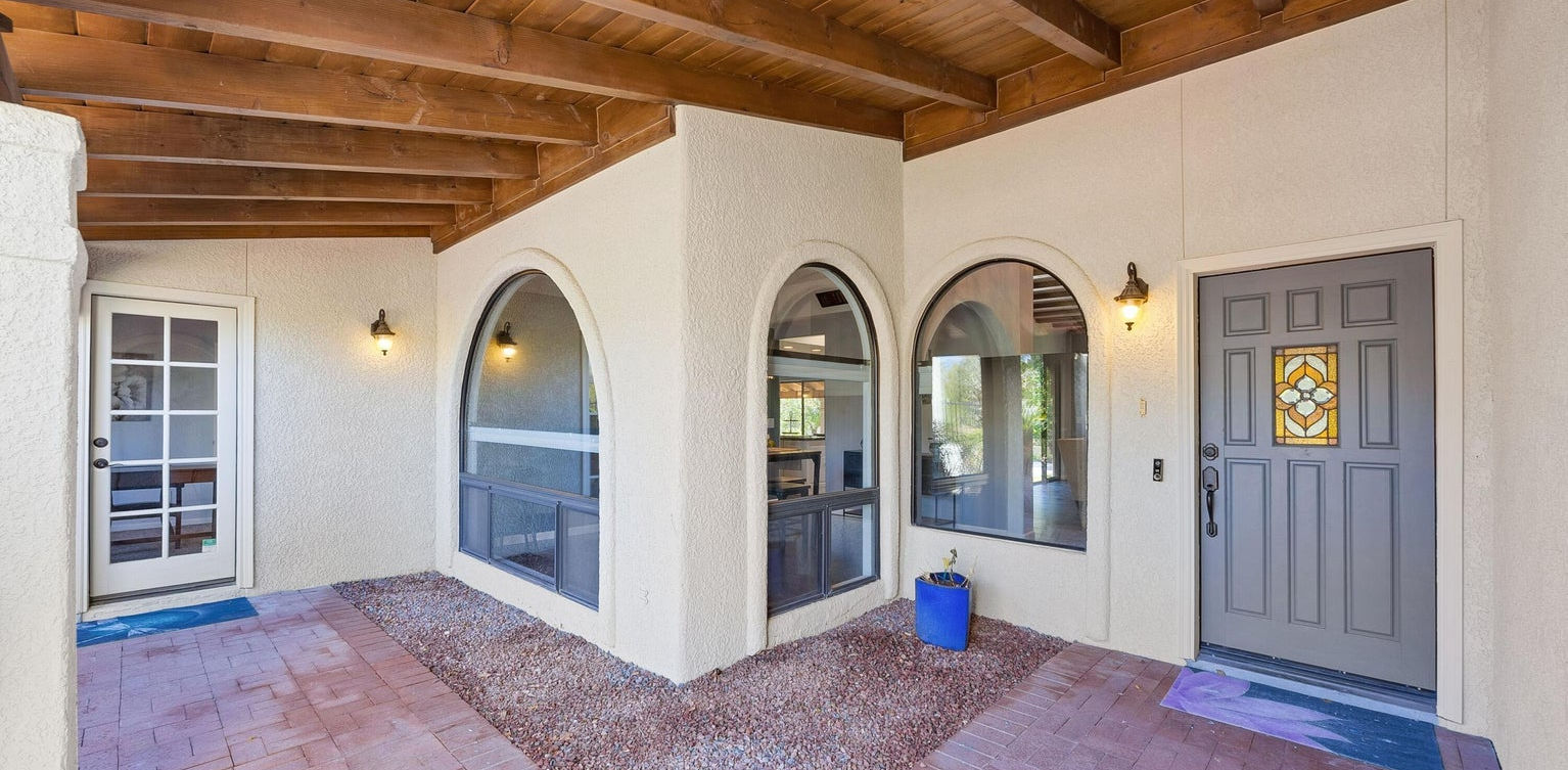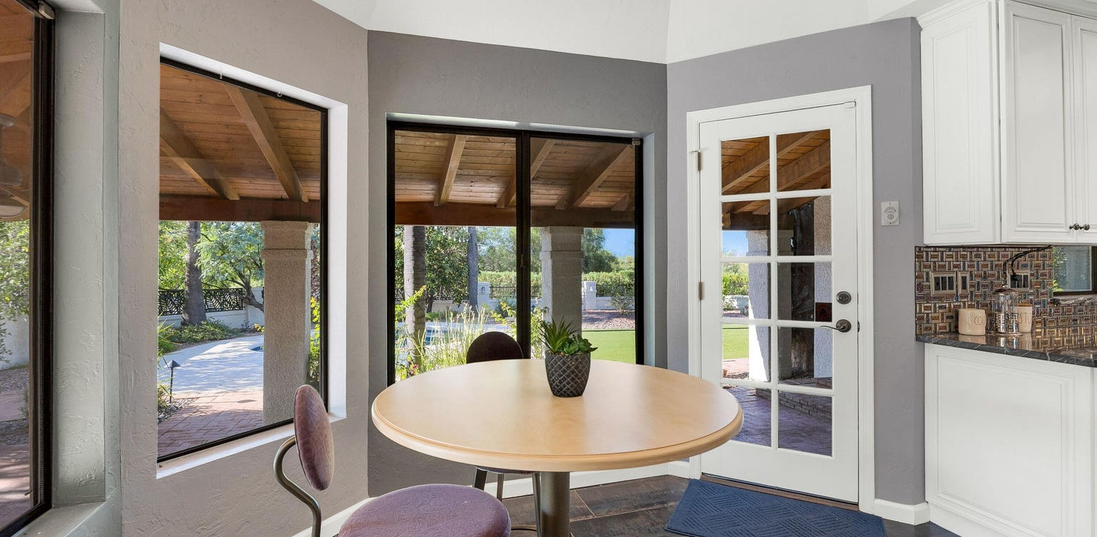 This Shadow Hill home is Gorgeous! Nestled in the heart of this friendly, walkable neighborhood, this home has no immediate neighbors- it sits adjacent to the wash on a corner lot of the cul-de-sac. Step in to the formal foyer with beamed vaulted ceilings, formal dining room with beautiful chandelier to your left, open living room with high ceilings, gas fireplace and wall of windows overlooking the backyard. Kitchen has been upgraded with newer cabinetry, monogram appliances, unique granite and has a lovely dining nook overlooking the spool. The family room is the ultimate entertainment space with a built in bar, mini fridge, custom cabinets, wood beamed ceilings, gas fireplace, and prewired for sound. Step out multiple doors to the backyard oasis- spool with mood lighting, covered patio with wood ceiling, BBQ area, professionally landscaped with turf, fruit trees, and natural desert. Front courtyard has lovely rose garden that displays exceptional blooms and scents! Enjoy the sunsets, mountains, serenity and even a small twinkle of city lights. The primary bedroom is a true retreat! The walk-in closet has plenty of space for shoes, clothes, accessories and dressing! The primary bathroom boasts a deep soaking tub with large picture window to the outside, glass shower with chromotherapy and rain head shower, separate commode and executive height dual vanity with customs sinks. Outside the primary bedroom is a retractable screened patio. 2 guest rooms with mountain views an an updated hall bathroom with glass shower and custom tile with niches. The 4th bedroom is perfect for a home office or guest bedroom with its own private entrance. The laundry is the perfect craft room or workshop with its built in desk and storage cabinets. This house has an abundance of recessed lighting, ceiling fans, skylights, rolling shades, class and charm! The 2 car garage is oversized with separate storage. Even though you feel tucked away in the desert you are minutes away from excellent shopping and restaurants!